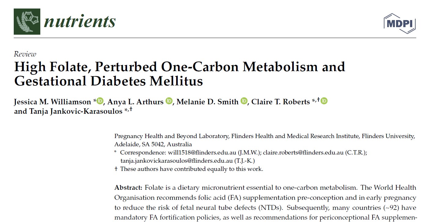 1. Williamson, J.M.; Arthurs, A.L .; Smith, M.D.; Roberts, c.t.; Jankovic-Karasoulos, T. Yüksək Folate, narahat oldu Bir karbon metabolizmi və gestational diabet mellitus. Qidalar 2022, 14, 3930.